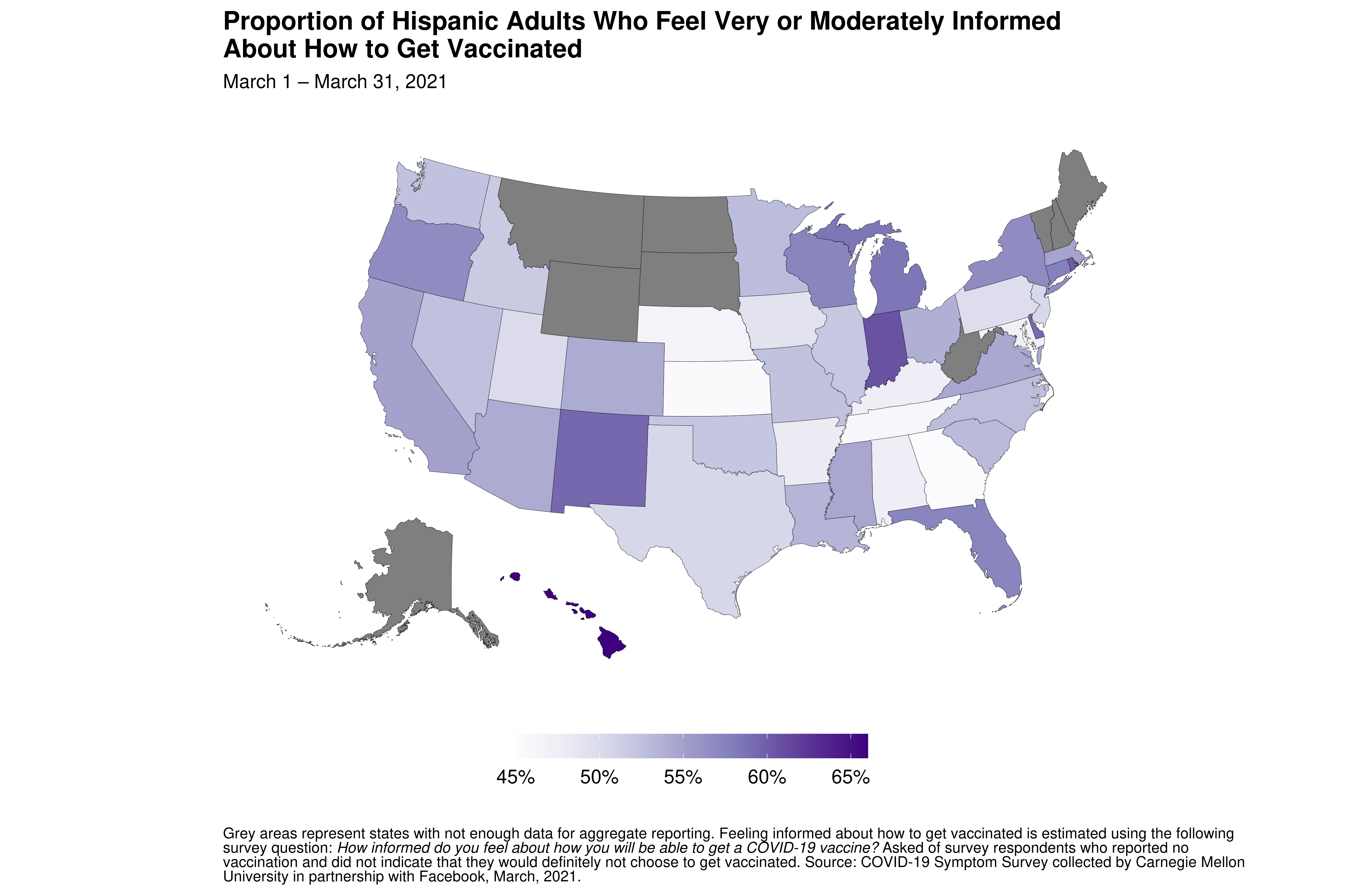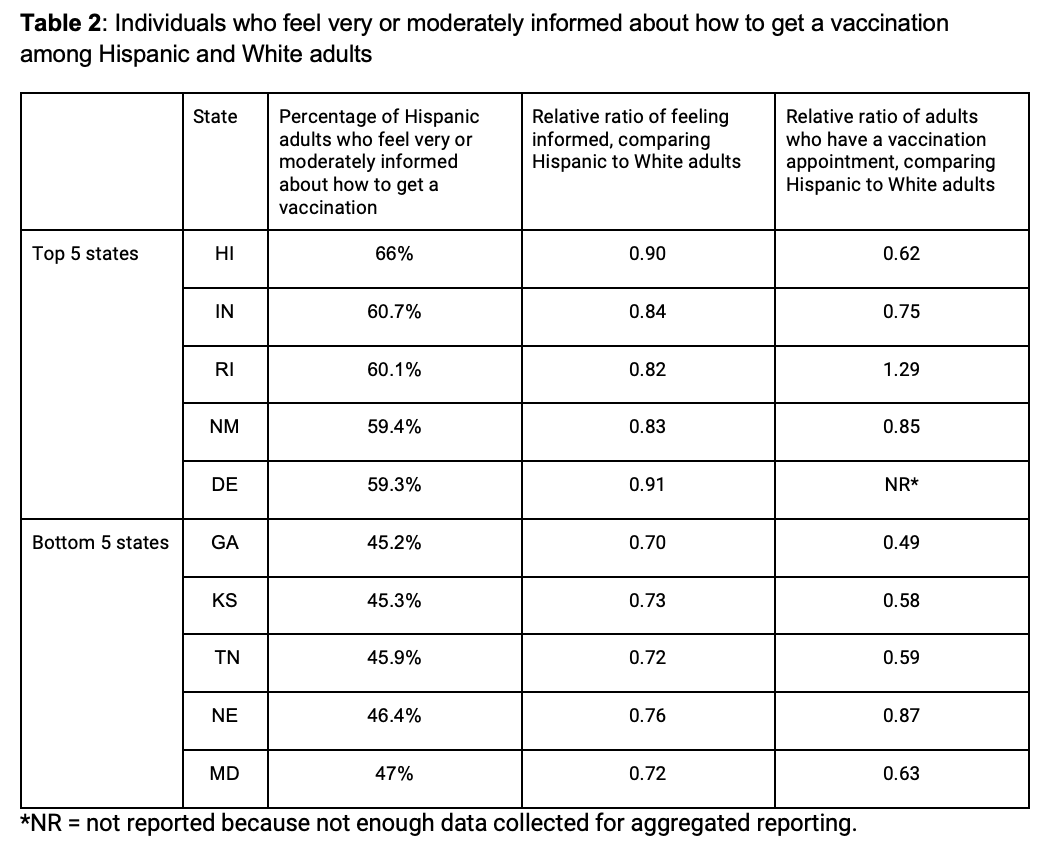 Feeling informed about how to get a vaccination among Hispanic adults varies significantly across states: